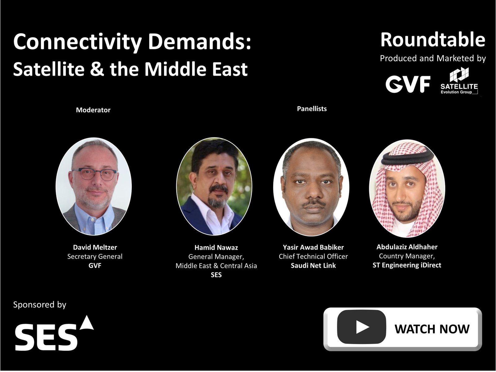 Following on from the ‘Connecting Africa: Overcoming Barriers Via Satellite Roundtable‘ of 16 September 2021, ‘Connectivity Demands: Satellite & the Middle East’ brought a new region into fine microscopic focus. Again moderated by David Meltzer of GVF, this Middle East-centric dialogue brought together SES Networks’, General Manager for Middle East & Central Asia; Saudi Net Link’s Chief Technology Officer; and, ST Engineering iDirect’s Country Manager for Saudi Arabia, for a vibrant discussion which benefitted from a collective professional experience of the Middle East’s communications markets amounting to several decades.