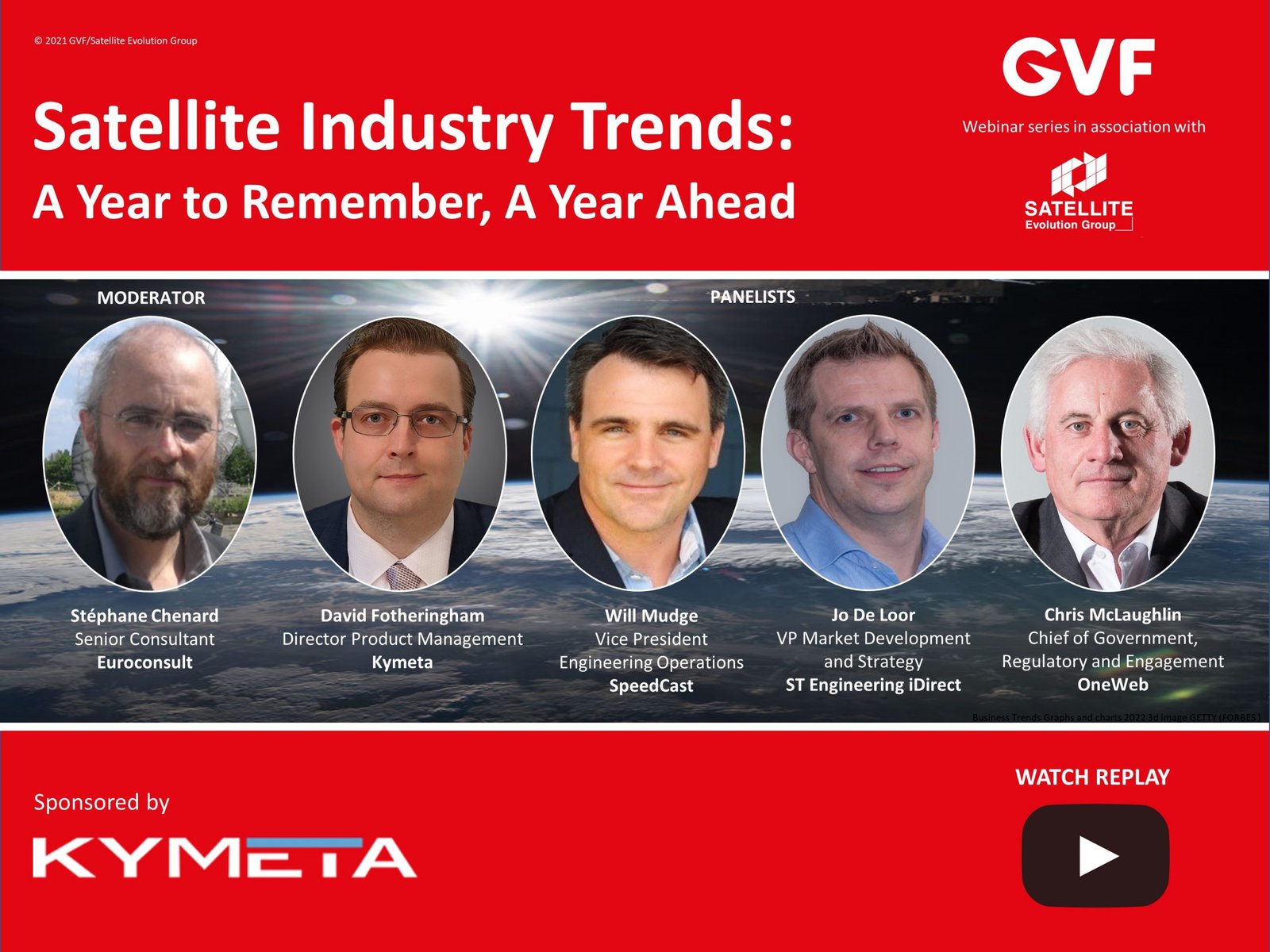 Joining us for the reflections and expectations of ‘Satellite Industry Trends: A Year to Remember, A Year Ahead’ were experts from a diverse group of industry members from Kymeta, OneWeb, Speedcast, and ST Engineering iDirect. Our panellists’ analyses and insights began with their describing their top event of 2021, and respective expected/predicted major event for 2022.